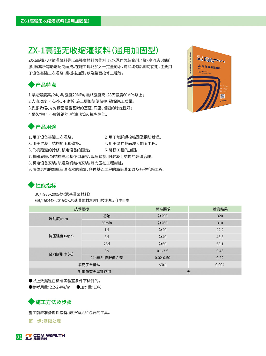 ZX-3/CGM-340高強無收縮灌漿料(超細加固型)