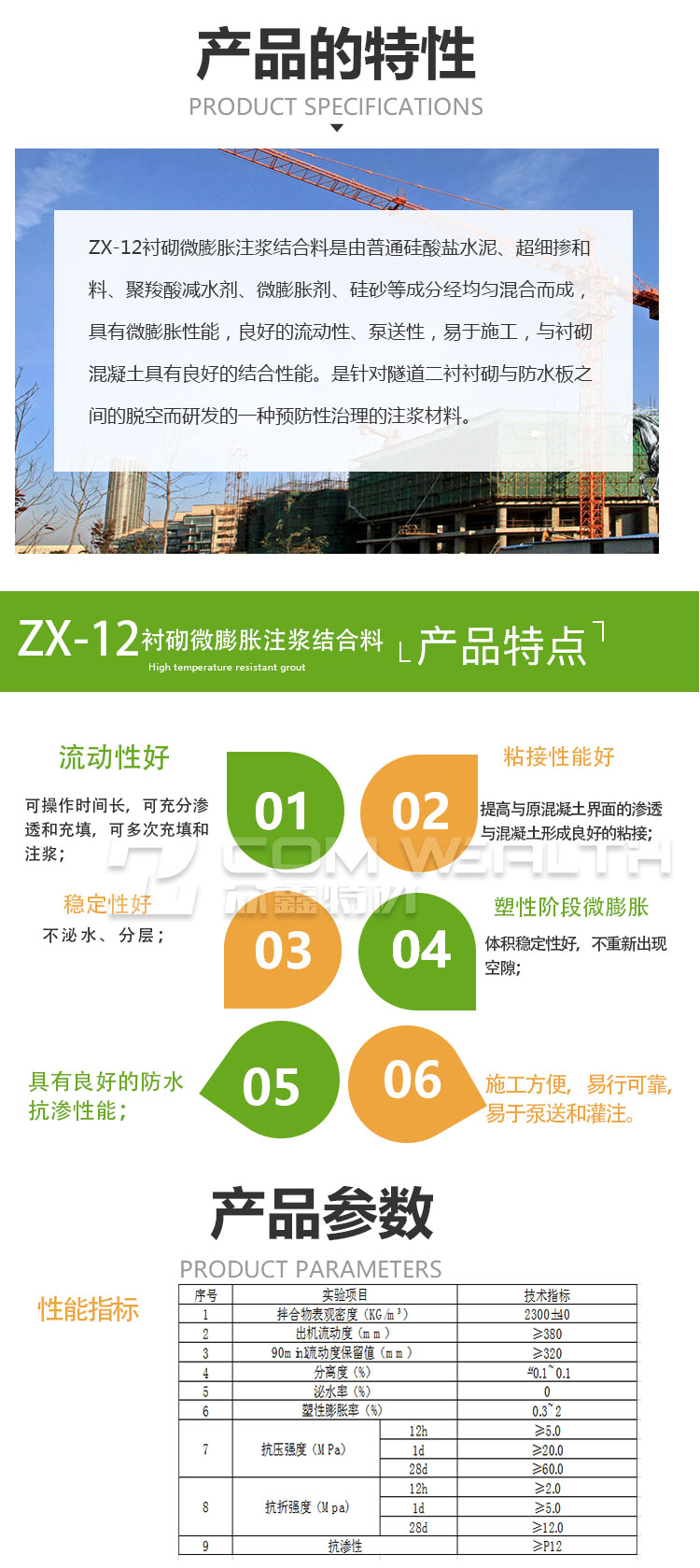 ZX-12襯砌微膨脹注漿結合料