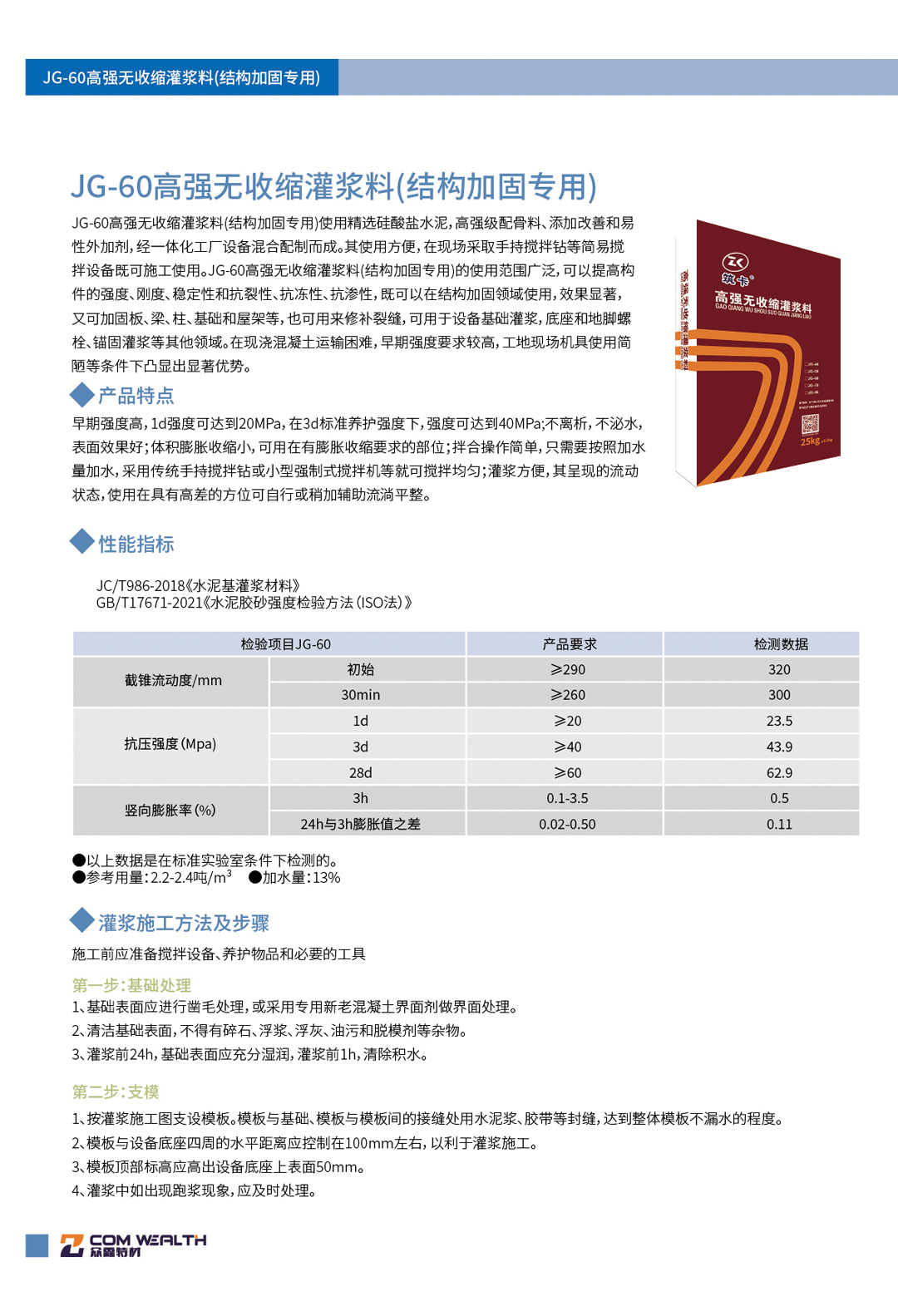 JG-60高強無收縮灌漿料