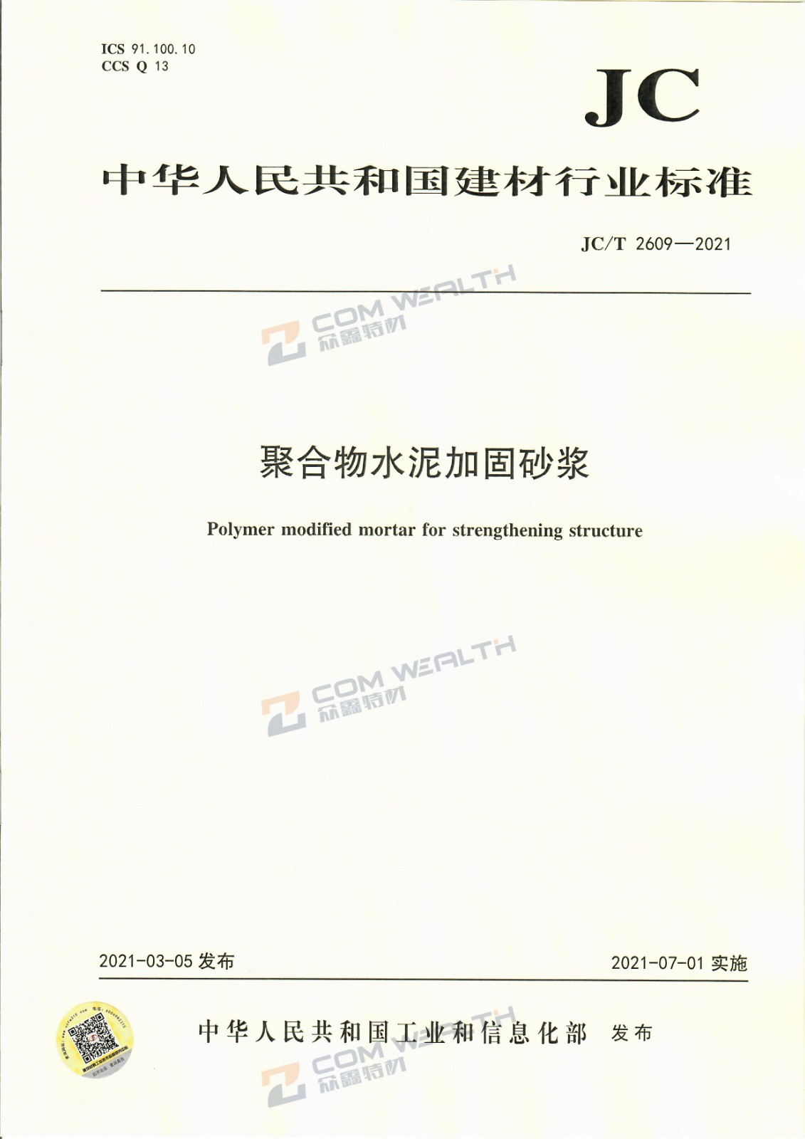參編JC/T 2609-2021 《 聚合物水泥加固砂漿》建材行業(yè)標準